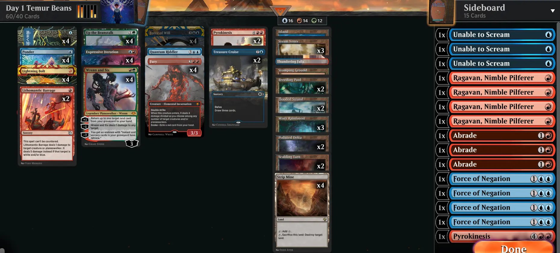 One heuristic I plan to challenge is the rule of thumb that Force of Will should be sided out in "fair" match-ups. The common wisdom suggests cutting it to avoid being 2-for-1’d; however, I want to test its limits. Given the sheer number of card advantage engines available in this format, it may actually be correct to keep it in. Conversely, the heuristic for Daze, which is to side it out on the draw, should remain a solid approach that should hold true in Timeless.